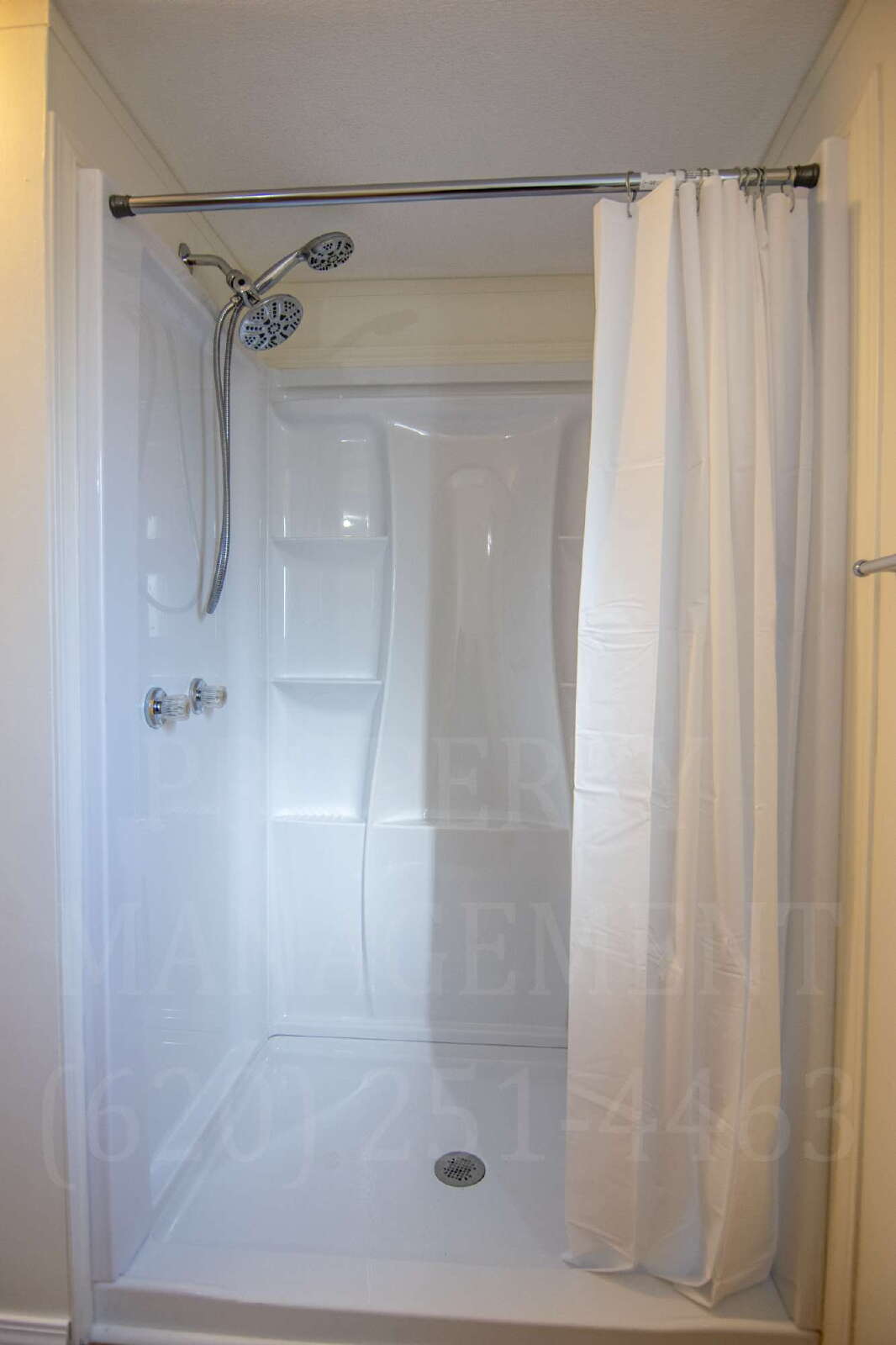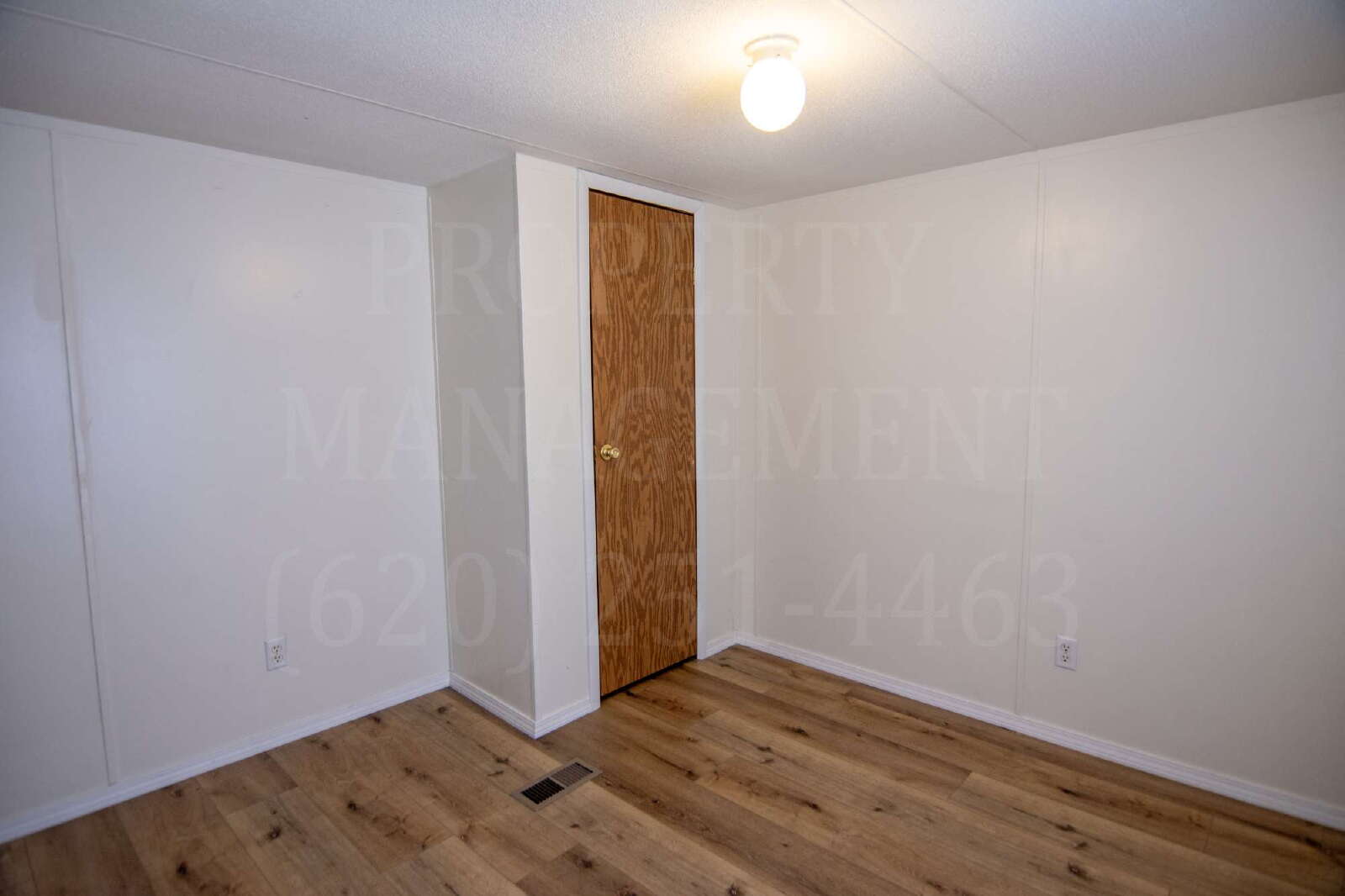 Cozy 2-bedroom, 2-bathroom residence where the kitchen features elegant wooden cabinets and contemporary appliances, smoothly connecting to the dining space. The entire home is adorned with light-colored walls and rustic wood floors, cultivating a welcoming and cozy ambiance. Each bedroom is generously sized and offers plenty of closet space. The bathrooms are practical, with one showcasing built-in shelving for extra storage. A convenient laundry area and additional closets ensure the home maximizes its space efficiently, perfect for anyone looking for comfort in a well-designed compact setting.